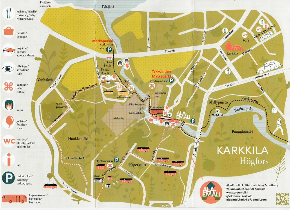 Takkointie 1. Karkkila 03600 Neljä paikkaa (tehtaan portti) Ilmainen, ei palveluja, ei paikanvarausmahdollisuutta. Ei sähköä.